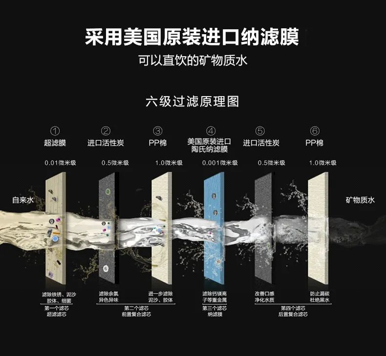 泉來礦泉直飲機六級過濾 現在我國的城市及農村基本上都使用自來水,自來水雖然經過了氯化消毒和殺菌,但不能過濾掉病毒,而這些有害物質進入人體,無疑增加了健康的風險。