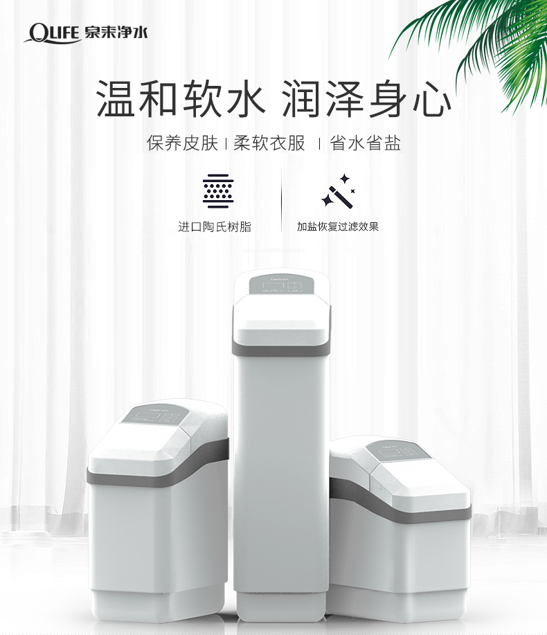 特色: 流量1.5噸/h,進出水口6分管,干鹽箱、逆流再生技術。